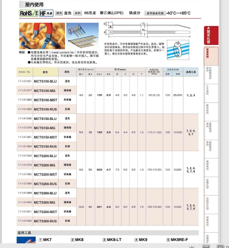 MCTS300-BLU海尔曼太通含金属扎带111-01399,食品级扎线带-安庆市高烽商贸有限公司发布日期:2021-1-15